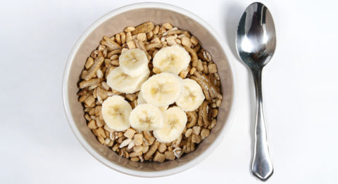• 1 1/4 cups bran flakes cereal topped with 1/2 banana, sliced