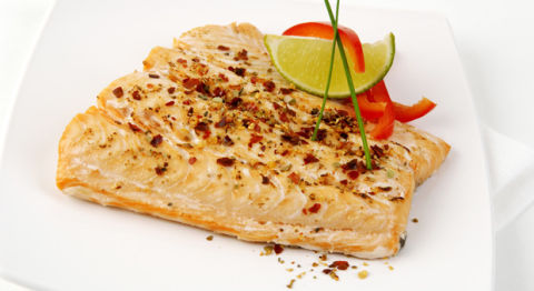 • Chili-Rubbed Spicy Salmon: Coat 5-ounce salmon fillet with a mixture of 1 teaspoon chili powder, 1/2 teaspoon ground cumin, 1/4 teaspoon red pepper, and 1/8 teaspoon salt. Spray with cooking spray. In nonstick skillet over medium heat, cook until opaque, turning once. Serve with 2/3 cup refrigerated mashed potatoes and 12 roasted asparagus spears sprinkled with lemon juice.